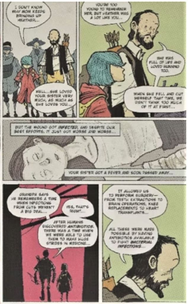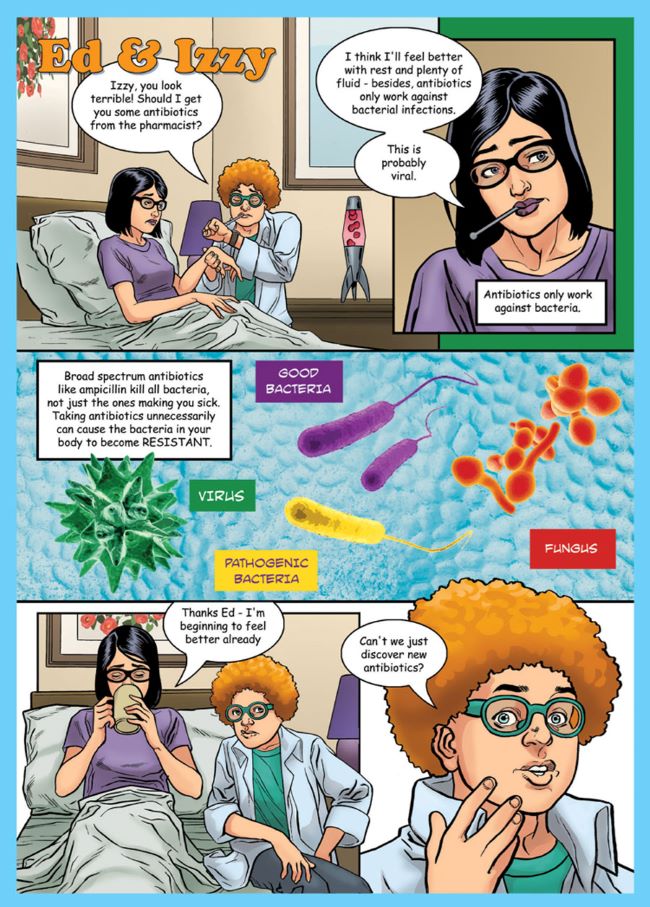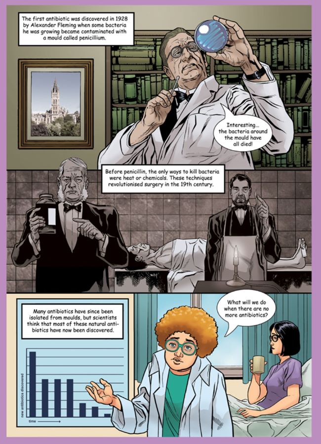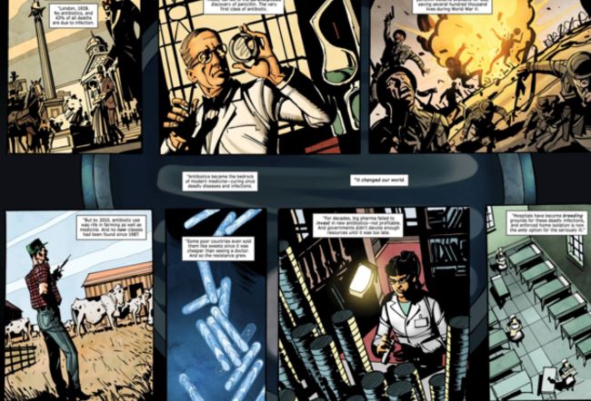 SULSA; on iki İskoç üniversitesi ve bir araştırma enstitüsünün ittifakından doğan kuruluş. Bu kuruluşun hazırladığı çizgi roman; antimikrobiyal keşiflerin tarihini, antibiyotik direncinin nasıl yayıldığını ve antibiyotiklerin aşırı kullanımının etkilerini vurguluyor. Çalışma Isabel Vincent tarafından yazılmış, Gary Erskine tarafından çizilmiş, Yel Zamor renklendirmiş.