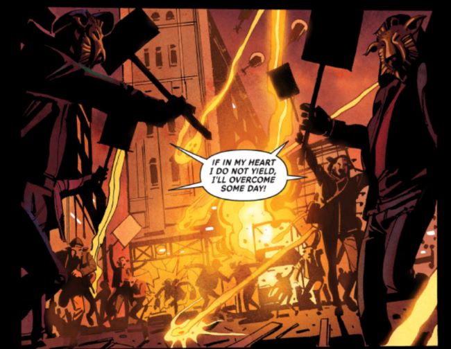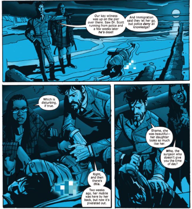 ‘’John Watkiss ile çalışmak bir rüya gibiydi. Ona ameliyatlar ve teknik ekipmanlar için birçok referans göndermem gerekiyor, ancak bunları bir çizgi romana uygun hale getirme konusunda inanılmaz yetenekli. John, Londra’daki Royal College of Art’ta anatomi ve güzel sanatlar dersleri veriyordu. Bir vücudun nasıl görünmesi gerektiğini biliyor ve onları parçalara ayırıp iç organlarını ortaya çıkarmada da çok başarılı! John, manzaralar açısından büyük romantiklerin ve insan formu açısından klasiklerin duyarlılıklarını birleştirme konusunda inanılmaz yetenekli. O kadar zengin ve canlı sahneler yaratıyor ki, ortaya çıkardığı şeyleri görmek bir zevk.‘’