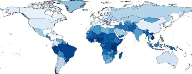 (Haritada açık maviden koyu maviye doğru, AMR yaygınlığına artmaktadır.).