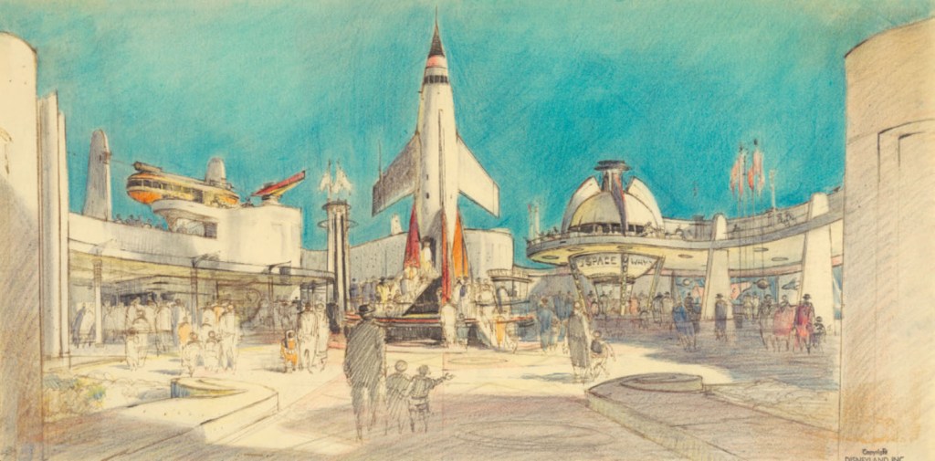 Bu yayınlar yapılırken Disney, Kaliforniya’nın Anaheim şehrinde ilk eğlence parkını (Disneyland) inşa ediyordu. Bu parkta, uzay temalı çeşitli oyun ve gösterilerin bulunduğu “Tomorrowland” da yer alıyordu.
