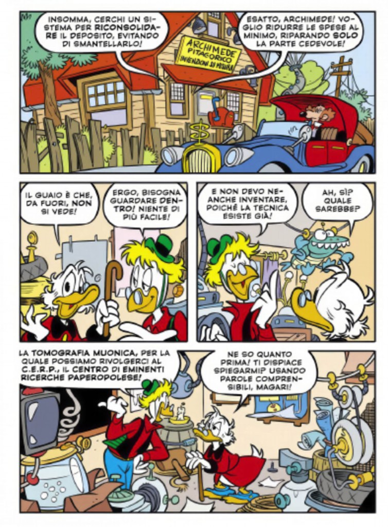 Öykü, Mickey Mouse’un 3527 no.lu cildinde, 2023 yılında yayınlandı. Öyküde, fizik ile birlikte arkeoloji, inşaat mühendisliği, volkanlar ve sanatı koruma gibi alanlara da yer verildi. Ana konu, son zamanlarda popüler hale gelen görüntüleme tekniği olan muografi ( muon radyografisi ). Ayrıca, yayın tarihinin de önemli bir anlamı oldu. Zira, muonların önemli bir rol oynadığı Higgs bozonu( ** )nun keşfinin 11. yıldönümü olan Temmuz 2023’te yayımlandı.