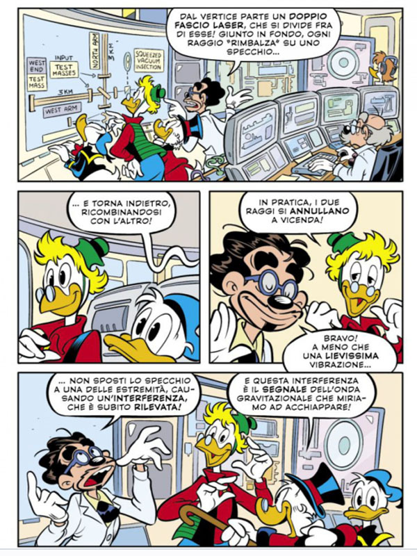 İtalyan bilim insanı Marchese, üç Disney öyküsü ( 3477, 3527, 3538 No.lu ciltler ) aracılığıyla öğretilecek üç fizik alanını seçtiğini açıkladı. Seçtiği alanlar; uzay keşfi, parçacık fiziği ve yerçekimi dalgası tespiti. Bu nedenle, çizgi roman öykülerini üretmek için önce, Disney sanatçıları ve senaristleriyle birlikte çalışan üç bilim insanından oluşan bir ekip kurdu. Her bilim insanı, gerçekçi içerik ve çizimler elde etmek için alanın literatüründe bulunan çeşitli referanslardan yararlandı.