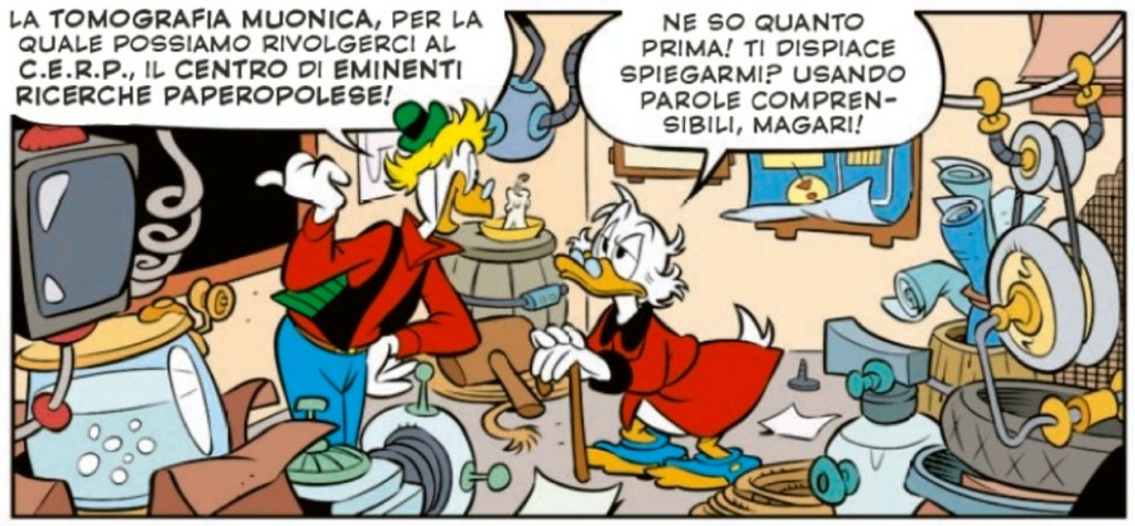 Öykü, bilim insanları tarafından kullanılan iki farklı muografi tekniğini, muon radyografisini ve muon tomografisini ayrıntılı olarak açıklıyor. CERN Laboratuvarı, öyküde CERP “Centro di Eminenti Ricerche Paperopolesi” Laboratuvarı ( Duckburg Seçkin Araştırma Merkezi ) adıyla geçiyor. Macera ile yayınlanan bilimsel raporda, daha fazla ayrıntı yer almış. Ayrıca, 2012’deki CERN’de Higgs bozonunun keşfinde muonların önemini açıklandı. ( Bu keşif için P. Higgs ve F. Englert 2013’te Nobel Fizik Ödülü’nü aldı.)