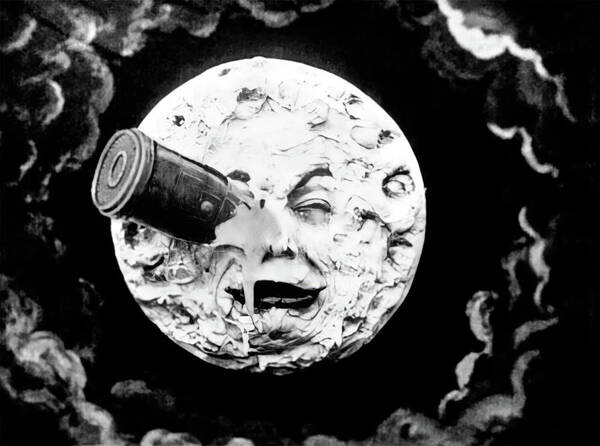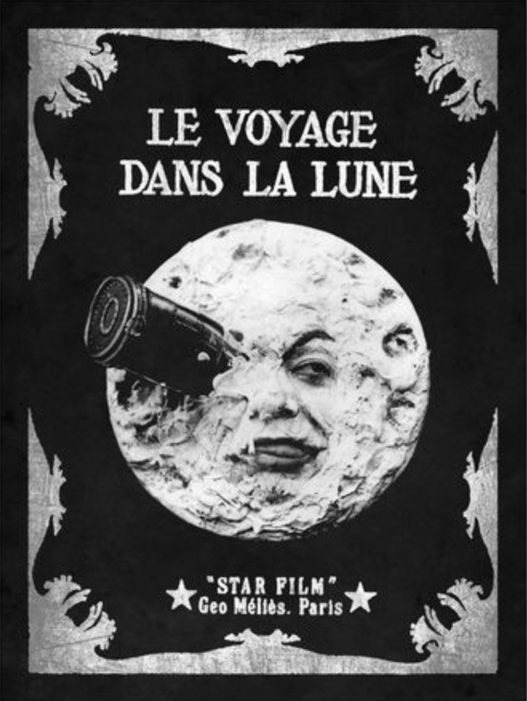 1902 yılında, bir panayır alanında, Melies’in filminin afişi tesadüf sonucu keşfedildi. Afişin ortasında, siyah arka plana karşı belirgin bir şekilde göze çarpan büyük beyaz Ay, dikkatleri üzerine çekiyor. Ancak, Melies’in tasvirinin gerçek dışı doğasının ve kağıt hamurundan yapılmış Ay’a atfedilen insansı özelliklerin kimseyi inandırmadığı belirtilmektedir. Yanlarda bulunan motifler, gök cisminin Dünya’dan gözlemlendiğini düşündürüyordu. Ay, tıpkı 1900 Dünya Sergisi’nde sergilenen ve büyük bir ekranda “Ay’ın bir metre mesafeden” gösterildiği büyük teleskop gibi, çok yakın görünüyordu