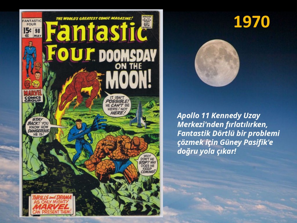 ‘’ Bu insanlık için küçük, benim için büyük bir adım ! ‘’ Astronot Neil Armstrong’un Ay yüzeyine ayak basması üzerine söylediği bu sözler, hala akıllarda. Dünyamızın uydusu Ay, yüzyıllardır insanoğlu için merak kaynağı. Yeniden, Ay’a insanlı seyahat ile ilgili, Artemis II projesi adı verilen, hazırlık çalışmalarının yapıldığı günlerdeyiz. Ancak , Apollo 11 unutulacak gibi değil ! Tabii, çizgi romanlarda da bu önemli olaya rastlıyoruz. Yoksa, bu seyahat gerçek değil mi ?!