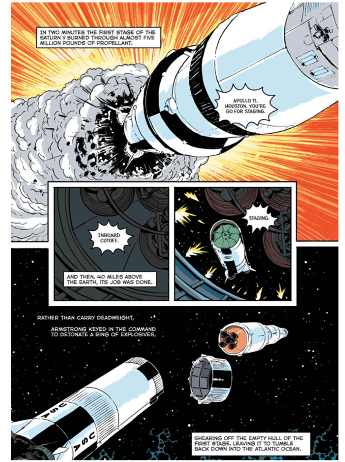 Jonathan Fetter-Vorm‘un kaleme aldığı, 256 sayfalık ‘’ Moonbound: Apollo 11 and the Dream of Spaceflight ‘’ kitabında , Apollo 11’in Ay’a inişinin öyküsü iki aşama halinde, çizgi roman halinde okura sunulmuş.