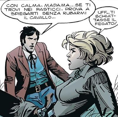 Cocco Bill ve Rick O’Shay. Birbirinden ayrı 2 kahraman. Cocco Bill, Jacovitti tarafından yaratıldı. Sürreal çizimler içeren bir western kahramanı. Bill’in konuşan ve sigara içen bir atı vardır. Ve ortalıkta şapkalı solucanlar, ayaklı salamlar dolaşabilir. 2001 yılında çizgi filmleri de yapılmaya başladı. Rick O’Shay ise Stan Lynde tarafından yaratılan biraz gerçeküstü temaları olan, gazete bandı olarak başlayıp daha sonra kitapları da çıkan bir westerndir. İki kahramanın öyküsü de İtalyan Fumetti tarzından uzak, oldukça Amerikandır. (Sayfa 19/1. vinyet).