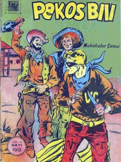 Pekos Bill. Kurgusal bir Amerikan kahramanıdır. İlk öyküleri 1917 yılında ABD’de yayınlandı. 1949 yılında İtalyan Mondadori yayınevi tarafından çizgiroman olarak basıldı. Pekos Bill’in özelliği, ateşli silah kullanmaması idi. Sadece kement kullanıyordu. 1955 yılına kadar; Guido Martina tarafından yazıldı, Raffaele Paparello tarafından çizildi. Ülkemizde de basıldı. (Sayfa 12/2. vinyet).