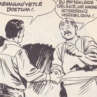 Patron Bonelli neden bıyıklı belli değil? Bir gönderme mi var? Canzio, uzun süre Bonelli Editore’nin genel müdürlüğünü yaptı. Ayrıca çizgiroman senaryoları yazdı. 2013 yılında vefat etti. Vinyete bakılırsa sürekli gecikerek onları kızdırdıkları belli oluyor. Bizimkiler çaktırmadan özür diliyorlar gibi. (Sayfa 29/3. vinyet).