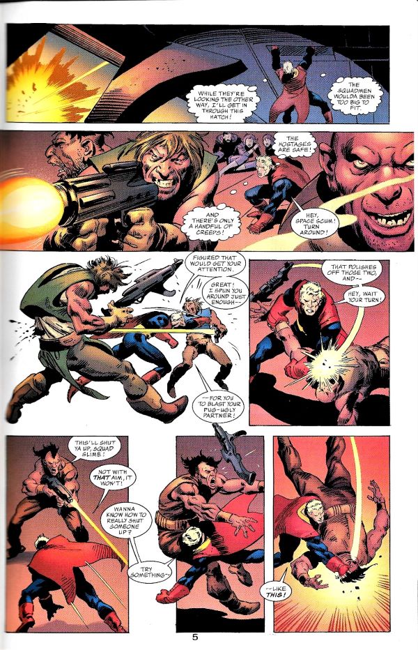 John Buscema’nın Silver Surfer’ının sekiz sayısını hiç sorun yaşamadan yaptım, biliyor musunuz? Bu, iki nedenden dolayı sorun olmadı: 1) Bu adamlar Barry Smith kadar ayrıntı koymuyorlar ve 2) Koydukları şeyi de hızlı koyuyorlar, bu yüzden bir tür sistemleri var. Yani, teslim tarihleriyle ilgili sorunları halledebilirsiniz; ama benim gibi titiz bir adamla Barry gibi titiz bir adamı alırsanız, başınız belaya girer! Buscema’nın Silver Surfer sayılarını çok sevdim. Kalemle sıkı çizimler yaptığı zamanlardı.