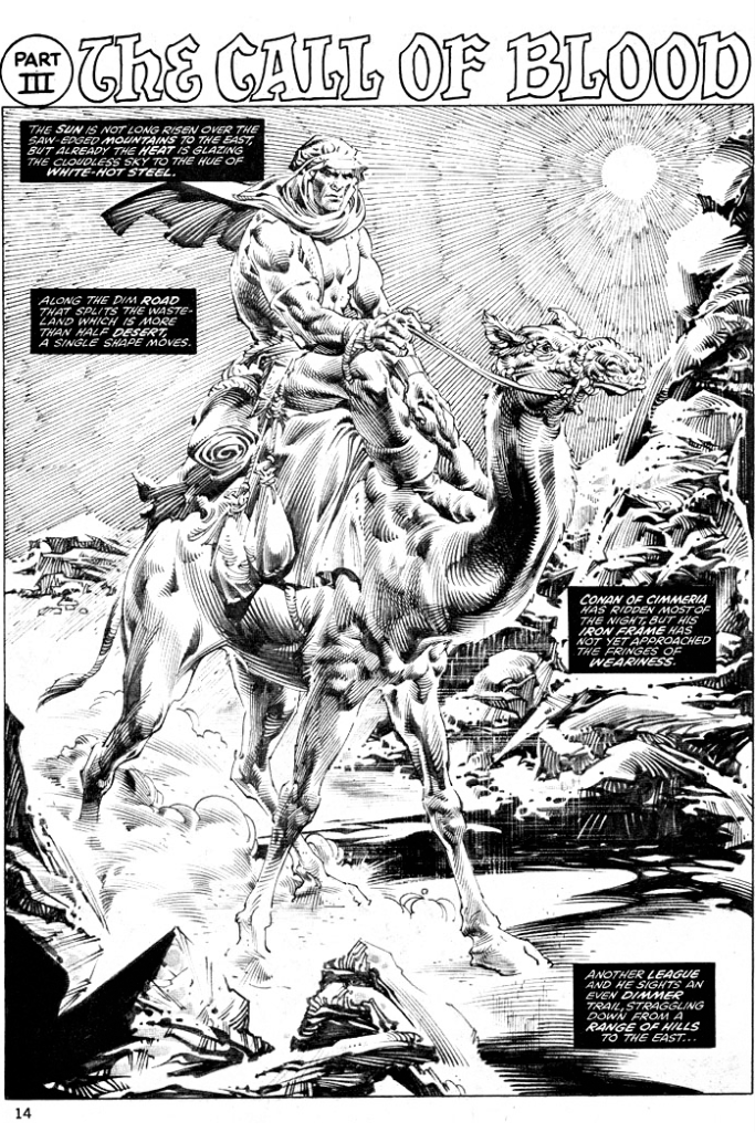 Alcala’nın benim Conan’ımı ilk mürekkeplediği günleri hatırlıyorum. Marvel’a gittim ve koridorda editörlerden biriyle karşılaştım -Len Wein veya diğer adam -Marv Wolfman – ve [heyecanla] “Ah, görmelisin, John. Çok güzel.” dedi. Alcala iyi bir sanatçıydı, ama çizimimi mahvetti ! Güzel kızlar yapardı ve 1930’dan kalma kirpikler takardı