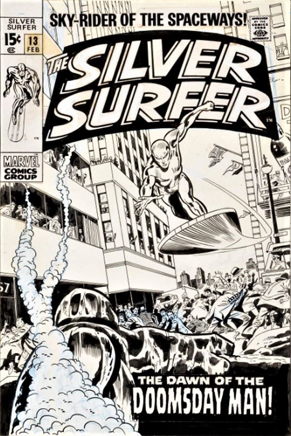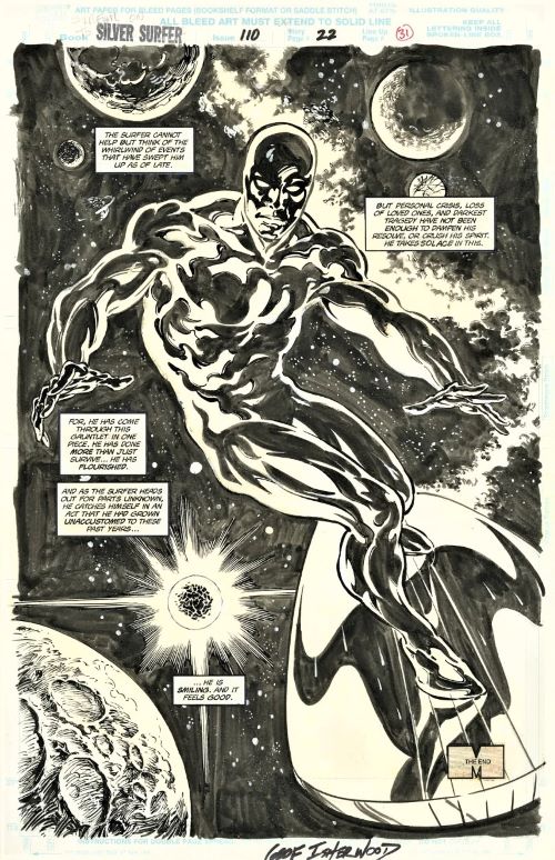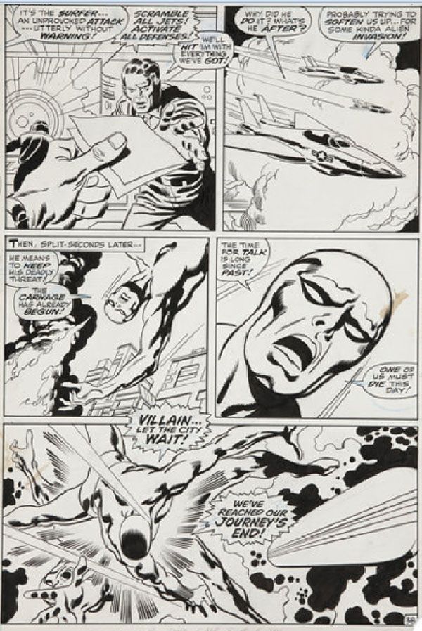 Silver Surfer #1’in ikonik kapağından The Silver Surfer #3’te Mephisto’nun yaratılmasına ve The Silver Surfer #4’te bir süper kahraman çizgi romanını süsleyen en iyi kapaklardan birine kadar , bu çizgi roman anının saf ihtişamı kıyaslanamazdı ve bunun büyük bir kısmı Buscema’nın sanatına aittir.