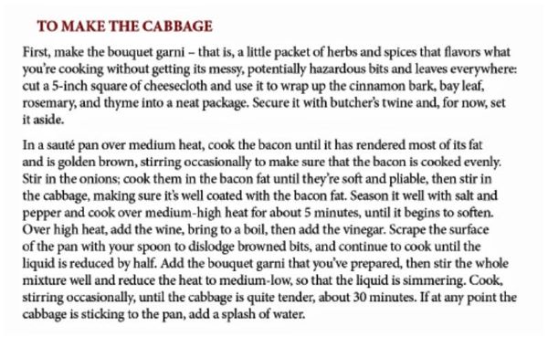 Sonuç olarak kitapta, çizgi roman hayranları bonus olarak, Bourdain’den birkaç yemek tarifi de yer alıyor ! ( Yukarıda, bir yemeğin yapılışı için, gerekli malzemeler ve nasıl yapılacağı bilgisi görülüyor. )