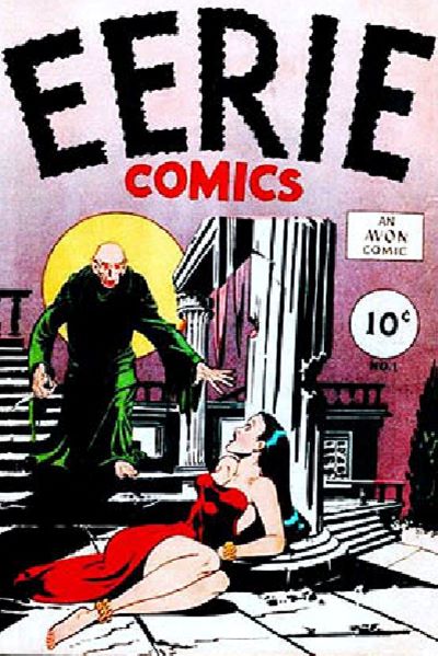 İlk özel korku çizgi romanları olarak; Robert Louis Stevenson‘ın Dr. Jekyll ve Bay Hyde’ın Garip Vakası’nın uyarlaması olan Gilberton Publications’ın Classic Comics #13 (Ağustos 1943) sayısı ile orijinal içerikli ilk korku çizgi romanı olan Avon Publications’ın antolojisi Eerie #1 (Ocak 1947) olarak gösteriliyor.