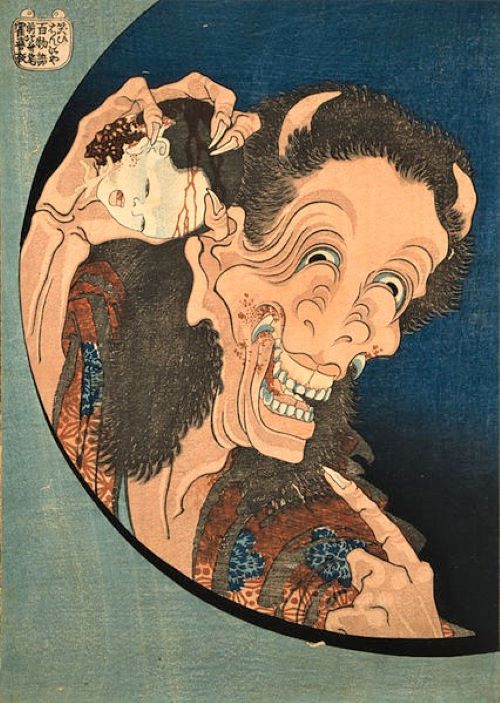 Japon salon oyununun adı ‘’ Hyakumonogatari Kaidankai ‘’. Yüz Doğaüstü Hikayenin Toplanması ‘’ anlamına geliyor. Oyun Japonya’da Edo döneminde ( 1603 – 1868 ) bir hayli popüler olmuş. Dönemin ünlü sanatçısı Hokusai’nin ( 1760 – 1849 ) konumuzla ilgili çalışmaları, halen sanat tarihinin önde gelen eserlerindendir. Hokusai 1831 yılından itibaren konuyla ilgilenmeye başladı. Kendisi ve yayıncısının yüz tane Japon Ukiyo-e sanat eseri planladıkları bilinmesine rağmen, bir süre sonra bu üretimden vazgeçtikleri için , bugün bu seriden 5 tane esere ulaşabiliyoruz.