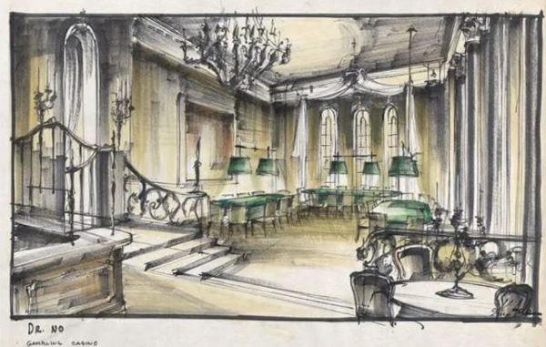 Ken Adam’ın tasarılarını Bond filmleri eşliğinde gözden geçirelim. Ama, şu konuyu gözden kaçırmamakta yarar var. Adam’ın Fleming romanlarından hiçbirini okumasına gerek yoktu, çünkü bunlar kahramanının maceralarının geçtiği yerler hakkında çok az ayrıntı sunuyordu ve bu da tasarımcıyı bir hayli özgür bırakmakla kalmıyor, aynı zamanda makul fanteziler yaratmakla da yükümlü yapıyordu. Wainwright’ın tanımıyla ; ‘’ siyah ve kahverengi keçeli kalemlerinin karakteristik yüksek kontrastlı, enerjik vuruşlarıyla çizilmiş – dinamik, katmanlı aşırı perspektifli görünümlerini oluşturan taslak çalışmaları ‘’ yla beraber !