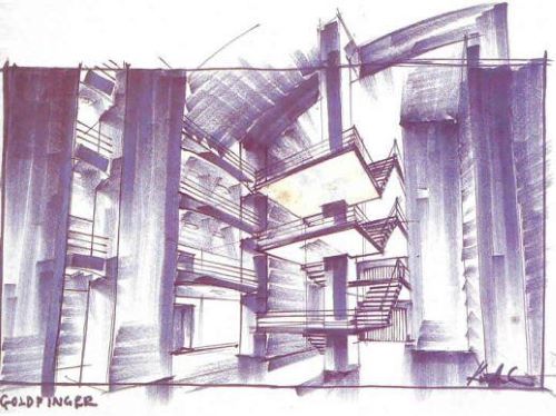 ‘’ 1921’de Berlin’de doğan ve daha sonra İkinci Dünya Savaşı’nda bir avuç Alman RAF pilotundan biri olan yapım tasarımı dehası Sir Kenneth Adam, sadece film sanatını değiştirmedi veya 007 için çizdiği yedi film sadece standardı belirlemedi. Sadık Flo-Master kalemleriyle, mimari göz olan Dr. Caligari perspektiflerini ticari marka kömür konturlamasıyla buluşturdu. Adam’ın Bond üzerindeki çalışması tek başına filmlerin boyutunu değiştirdi. Ken Adam’dan önce, Hollywood’un boyutu ve ölçeği İncil destanlarının, kılıç çılgınlıklarının, şov dünyası pembe dizilerinin, korsan maceralarının ve müzikaller dünyasının arenasıydı.