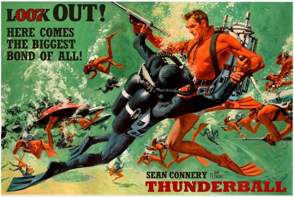 Thunderball, Dr. No ile bazı benzerlikler taşır . Her iki filmde de Bond, kötü adamı araştırmak ve bazı nükleer nesneleri bulmak için Karayipler’e gider. Thunderball ayrıca Bahamalar’ın plajlarını ve berrak mavi denizlerini, Nassau’nun sömürge mimarisini göstererek bir seyahat günlüğü görevi görür ve Bond, kötü adamlardan kaçmak için Junkanoo geçidini kullanır..