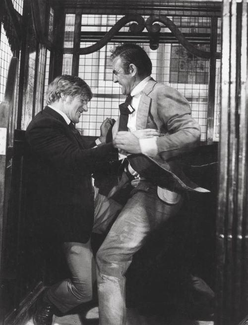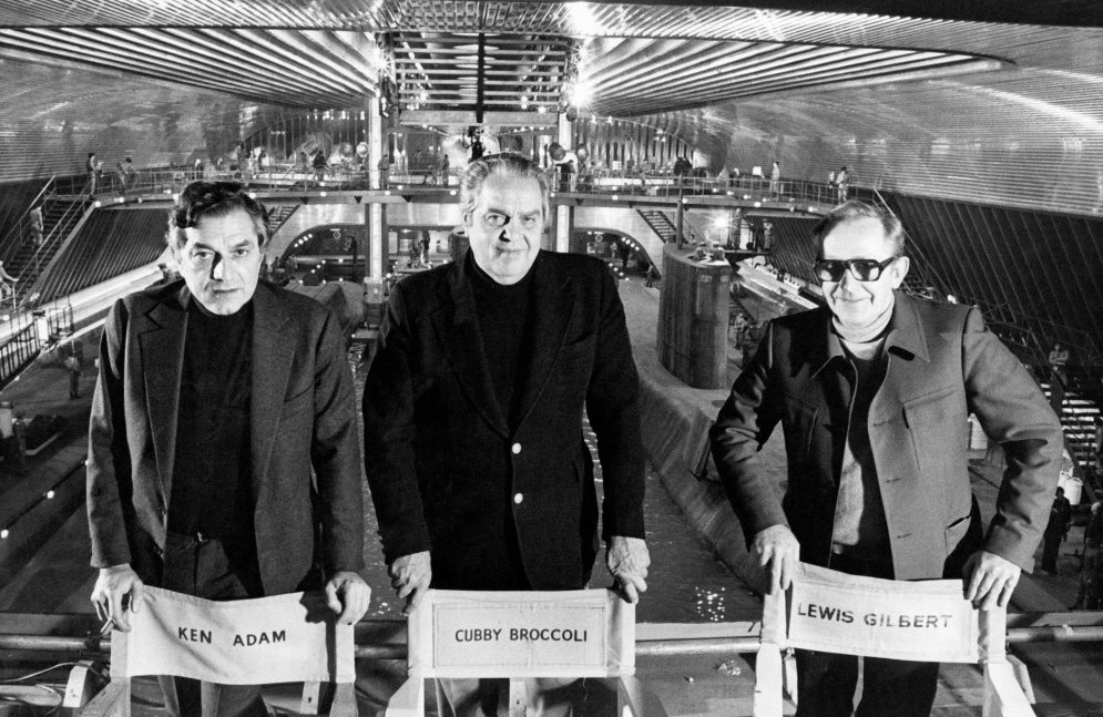 yapımcı Albert R. Broccoli (ortada) ve yönetmen Lewis Gilbert (sağda) ile birlikte