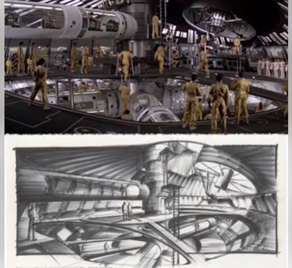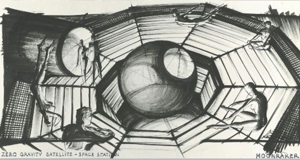 Adam’ın Moonraker için hazırladığı geniş ve gerçekten etkileyici setler, Brezilya ormanlarında bulunduğu varsayılan Maya tarzı bir komuta merkezinden, dev roket egzoz kanallarının hakim olduğu bir konferans merkezini barındıran bir Uzay Mekiği’ne kadar uzanıyordu.