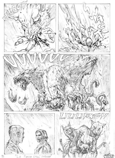 İkonografinin en aşırı ve zor örneklerinden biri (kan çağlayanı ile birlikte uçurumla birlikte) şeytani köpek Cerberus’un (binlerce versiyonu vardır) yaratılışıyla ilgilidir. Hikaye her şeyi daha da zorlaştırdı, çünkü varlık lanetliye vahşice saldırmak için vücudunun her parçasını farklı bir yöne hareket ettiriyordu. Sonuç, Dante’nin arzuladığı alegoriye saygı duymakla birlikte (üç farklı kafa) bir iblis oldu. Bu arada, Desdemona’yı yeniden çizmek çok keyifliydi ve macerada üstlendiği rolün de atmosferin de ona çok uygun olduğunu düşünüyorum. ‘’