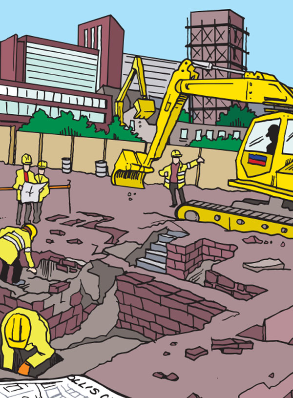 Sheffield Şehir Konseyi’nin Castlegate yenileme projesinin bir parçası olan kazı inşaat mühendisliği uzmanları Keltbray tarafından denetlendi . Arkeolojik buluntular 13. yy.’dan kalma.