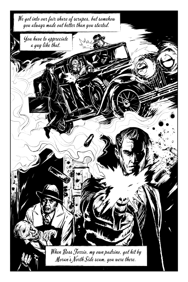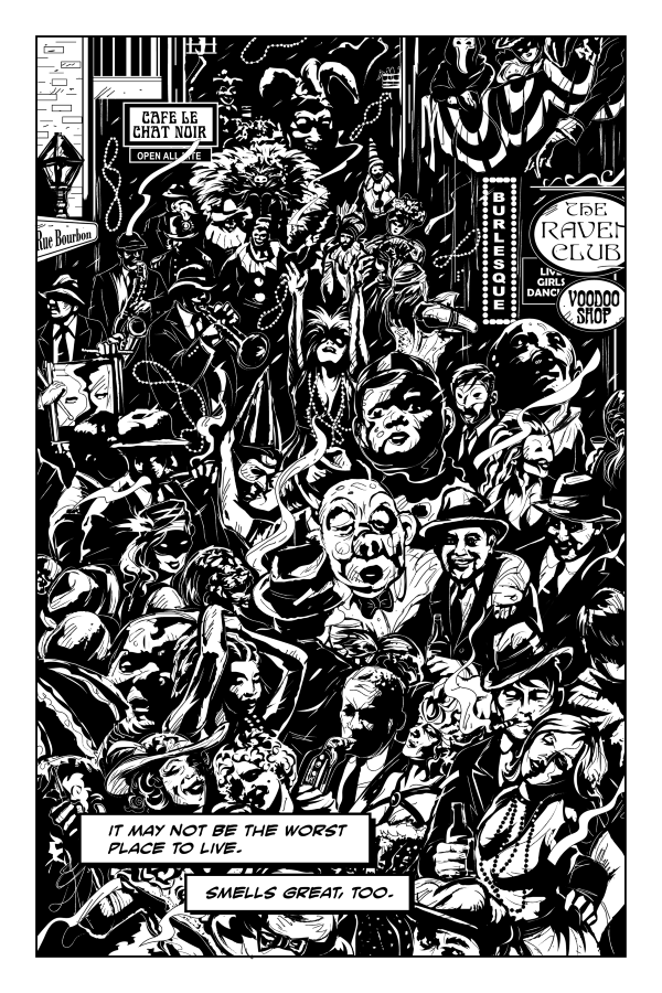 Sisk’in çalışmalarından bazıları , Poe Noir’ın neye benzemesi gerektiğini bildiğim çizgideydi, bu yüzden ona ulaşmak zorundaydım. Birkaç e-posta ve telefon görüşmesi anlaştığımızı kanıtladı . Sanat stillerini ve varyasyonlarını gerçekten beğendim ve hatta üzerinde çalıştığım materyale nasıl yaklaşabileceğini görmek için bu gösterilerde birkaç taslak yapmasını sağladım. Zamanla onu tanıdıkça, aramızda iyi bir uyum olacağını ve birlikte çalışmanın keyifli olacağını biliyordum.