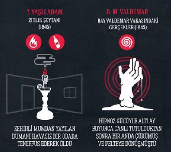 ‘’ On dokuzuncu yüzyılın sonunda Fransız yazar Marcel Schwob, Jorge Luis Borges’in tanımladığı ‘hayali yaşam’ kavramını ortaya attı. Borges’e göre bu türde ‘kahramanlar gerçektir; olgular muhteşem ve bazen fantastik olabilir. Bu kavramın ardından çizgi romanda, kurgu ve gerçekliğin karıştığı yeni fanteziler yaratmak için edebi yazarların ve tarihi figürlerin yaşamlarına da başvurulmuştur. Bu bağlamda, Amerikalı yazar Edgar Alan Poe, yalnızca hayatı ve çalışmaları açısından değil, aynı zamanda kendi kısa öykülerinin kahramanı veya yenilerinin beklenmedik kahramanı olduğu, uydurma biyografilerdeki karakter olarak da ilgi çekmiştir !!”