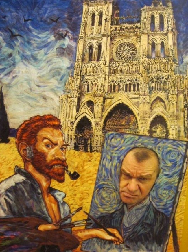 ‘’ Örneğin, Van Gogh’la ilgili bir konu hakkında gerçekten çok az insan konuşabiliyor. Hala birçok gizem ve belirsizlikle çevrili. Tüm hayatı sırlarla doluydu. Halbuki biz çok daha fazlasını biliyorduk. Örneğin Toulouse-Lautrec hakkında, özellikle de uzun süre “genelde” yaşadığı için kadınlarla olan ilişkisi hakkında… (gülüyor.) Van Gogh’un tarzında çalışmak için çok fazla eğitim aldım. Ama burada kendi tarzımı yeniden ürettim, özellikle sulu boyayla çalıştığım için. Ayrıca sahnelemeye, kompozisyonlara, renk seçimine vb. kendi duyarlılığımı mümkün olduğunca entegre etmeye çok zaman harcadım. ‘’