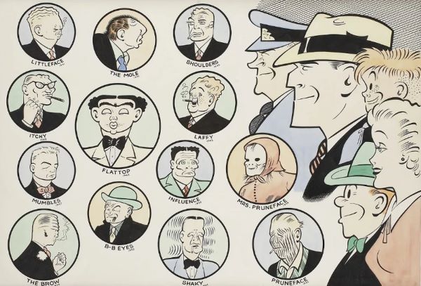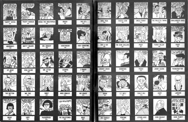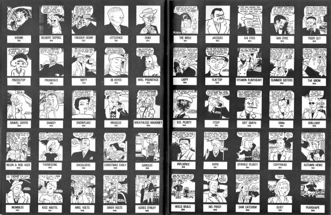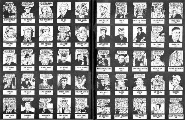 Yazının sonunda, Dick Tracy Chester Gould Sanatı” 4 Ekim – 30 Kasım 1978 tarihleri arasında Karikatür Sanatı Müzesi’nde düzenlenen sergi kataloğu için, Matt Masterson tarafından bir araya getirilen DICK TRACY 1931-1977 yılları arasındaki 200 karaktere bakalım.