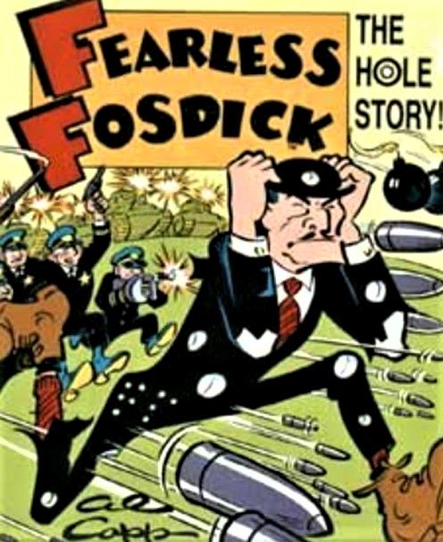 Bu çizgi band serisinin yan karakterlerinden biri olan ‘’ Fearless Fossdick ‘’ ; geriye taranmış siyah saçları, incecik ayrılmış bıyığı ve Tracy’ninkinden bile daha belirgin, sivri bir çeneyle sonlanan belirgin bir alt çene çıkıntısı olan polis memuruydu. Ayda sadece 22 dolar maaş alan, aptal ama inatçı bir polisti. Aslında Dick Tracy’nin bir parodisiydi. (Fosdick, Ağustos 1942’de bir Li’l Abner macerası içinde ilk kez sahneye çıktı . )