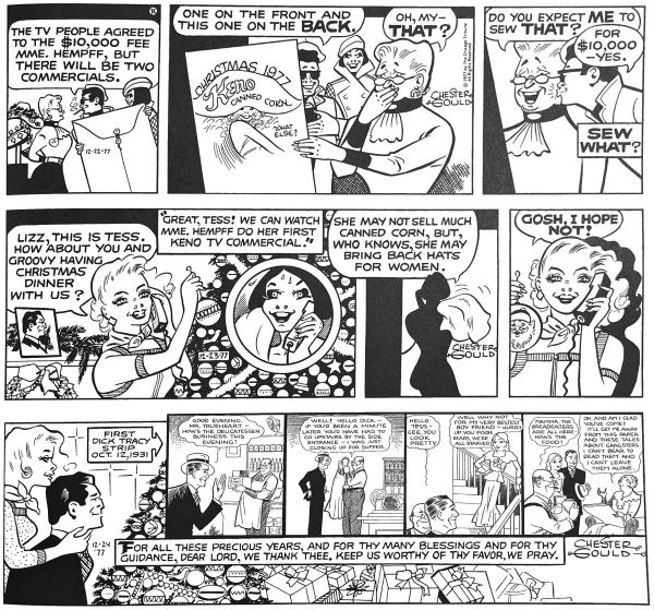 Gould, bu yıllarla ilgili Amerikan yaşamındaki gelişmeler hakkında güncel hikayeler sundu ; ve pembe dizi öğelerini tasvir etti. Ancak, Dick Tracy’nin polis memuru maaşıyla açıklanamayacak kadar gösterişli bir şekilde yaşaması bazı tartışmalara yol açtı. Ayrıca okurlar, maceralardaki kötü adamların çizimlerindeki grotesk üslubu garip bulmuşlardır.