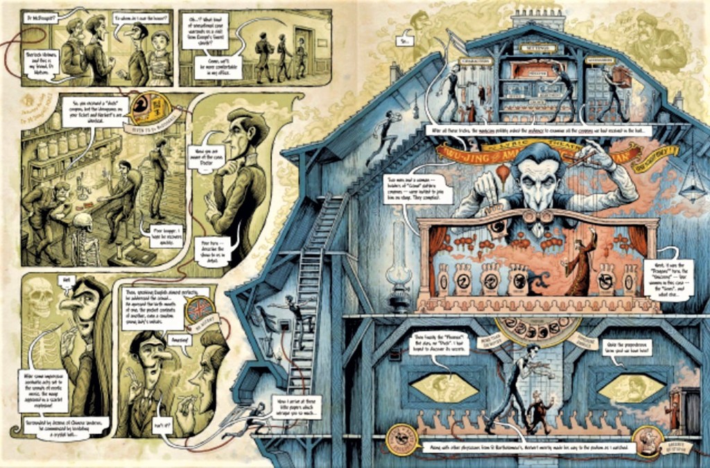 Haritalar gerçek antikalar, onları yeniden çizmedim. Kitabımızın tamamı hakkında gerçekten sürükleyici bir his yaratmak istedik ve gerçek haritalar bu konuda yardımcı oluyor.1890’ların Londra’sındaki yerler ve binalar hakkında çok fazla araştırma yaptık. Binaların yüzde 90’ının gerçek olduğunu söyleyebilirim. Bazıları artık yok, ancak o zamanlar nasıl göründüklerini gösteren eski resimler bulduk. Bu araştırma bizim için büyüleyiciydi.