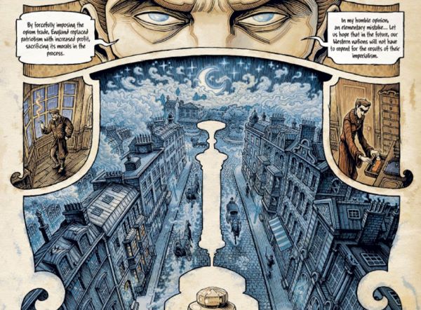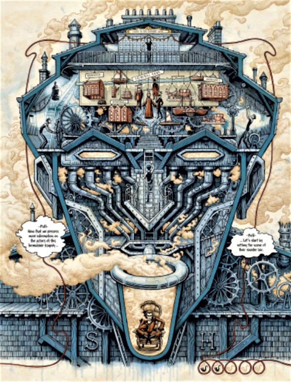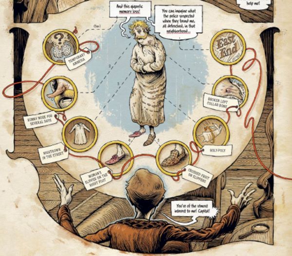‘’ Dahan’ın sanatı muhteşem. Holmes ipuçlarını topladıkça tüm ipuçlarını birbirine bağlıyor. Kapakta da görebileceğiniz gibi, bize Holmes’un düşüncelerini göstermek için bir tür steampunk-Viktorya dönemi tasviri sunuluyor .(… ) Normal bir Viktorya dönemi evinin kesiti, içindeki düşünceleri işleyen tıkırdayan makineler, Holmes’un düşüncelerini sakladığı dolaplar ve çekmeceler ile neler olup bittiğini anlamaya çalışırken, içinden geçebileceği birkaç oda bulunuyor. Bu mükemmel bir görsel numara ve Holmes’un düşünce sürecini netleştirirken aynı zamanda izlenmesi ilginç olmaya devam ediyor. Holmes hikayelerinin çoğunda, bize nesneleri nasıl bildiğini anlatır. Burada da bunu yapıyor, ancak Dahan bunu sanatla zenginleştiriyor, daha önceki ipuçlarının kenar boşluklarının dışına (ancak iplikle birbirine bağlı) küçük daireler ekleyerek takip edebilmemiz durumunu artırıyor.
