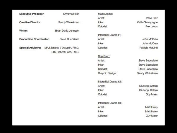 Yarbay Robert Ross’un açıklamalarıyla , daha sonra tüm bu görüşler ışığında Amerikan Ordusunun her türlü tehdide hazır olma durumunu artırmak için, bir dizi çizgi roman üretmek amacıyla Arizona Eyalet Üniversitesi Tehdit Yayınları Laboratuvarı ile ortaklık kurulduğu ortaya çıktı.