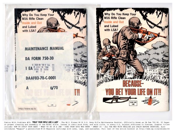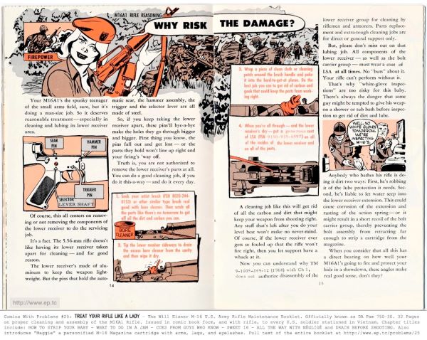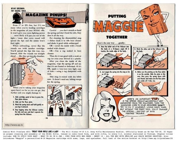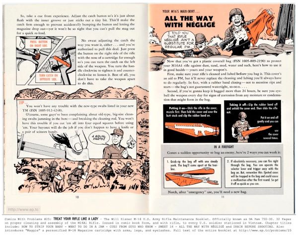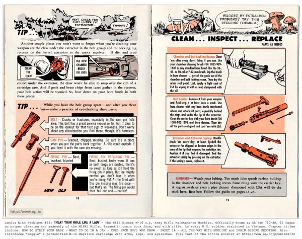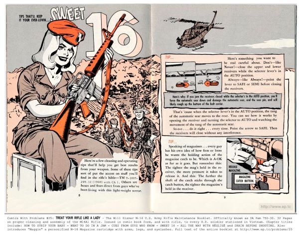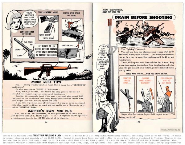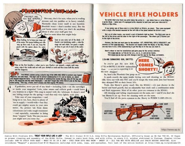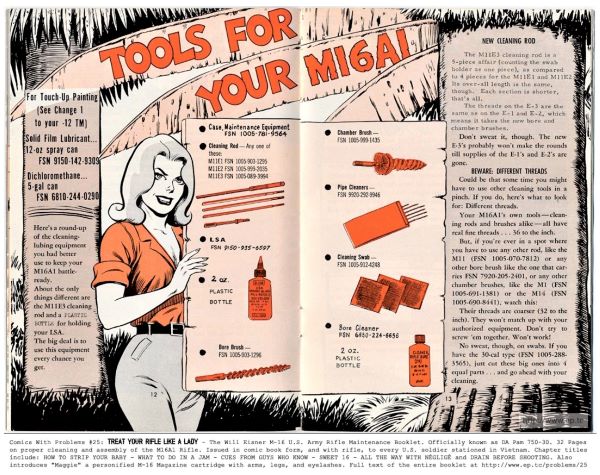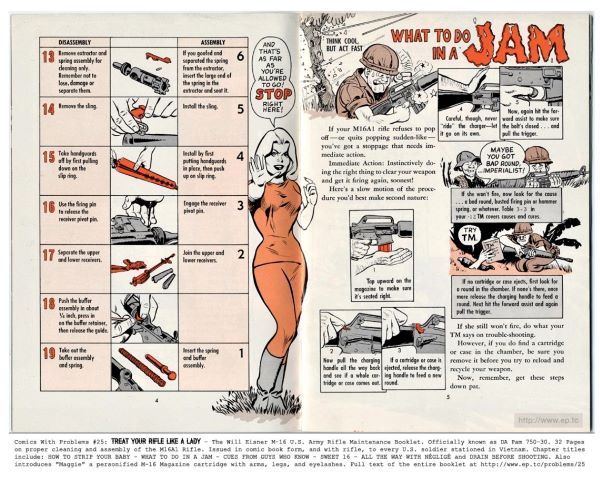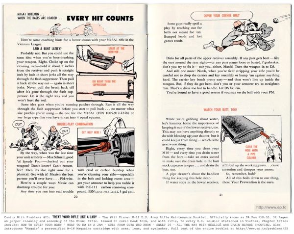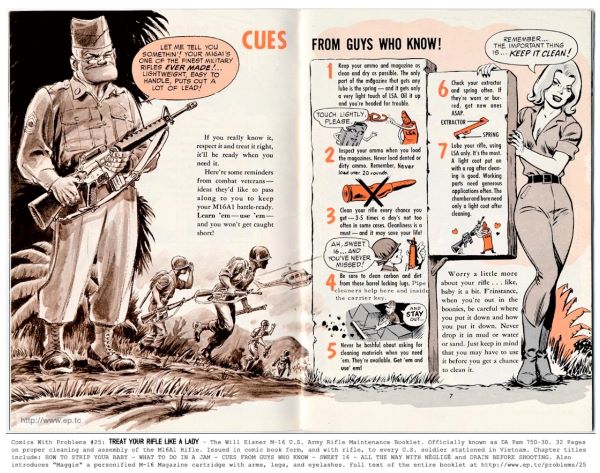 Bu eğilim Vietnam Savaşı boyunca devam etti. O sırada Ordu, bir eğitim eksikliği keşfetti ve Askerleri uygun silah bakımı konusunda eğitmek için bir çizgi roman hazırladı. ( En sondaki Ek bölüm’de Will Eisner’in silah bakımı için hazırladığı kılavuz görülüyor. )