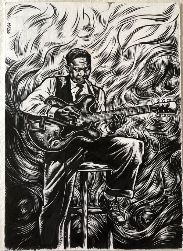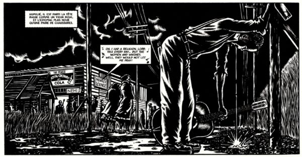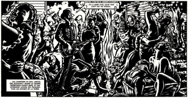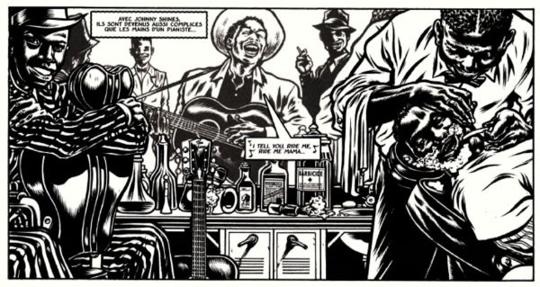 Sayıklamada, rüyalarda, alkolde, çizimin titreşimleri Edward Munch’un deliliği veya umutsuzluğu ifade eden akkor kıvrımlar olan siyah beyaz gravür eserlerini anımsatıyor. Ama aynı zamanda Amerikalı yeraltı karikatüristleri Burns veya Crumb’ın kalın ve donuk çizgileri de var. Tanınmış illüstratör Mezzo’nun çizimi, sanki bu orijinal lanetin, Robert Johnson’ı yalnız bir adam yapan bu anlaşmanın etkisi altındaymış gibi. Eseri takdir etmek için müzik uzmanı olmanıza gerek yok.