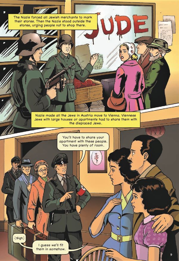 ‘’ Trina bana Kindertransport ve Kristal Gecesi’nin birçok fotoğrafını gönderdi. Ayrıca dönemin kıyafetlerine de çok aşina ve saç ve mobilyalar hakkında birçok referans paylaştı. İnternette de pek çok resim var ama kütüphaneye yaptığım bir gezi gerçekten yardımcı oldu. Her şeyle ilgili harika resimler ve hayatımda hiç tank çizmediğim için, sadece II. Dünya Savaşı sırasında kullanılan Alman tanklarını konu alan bir kitabın tamamını bulma şansına sahip oldum! ‘’