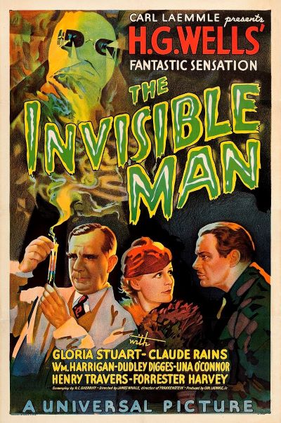 Sinema alanında ise en ses getiren film yine H.G. Wells‘in romanından uyarlanan filmdir. Görünmez Adam, 1933 yılında, James Whale‘in yönettiği, başrollerinde Gloria Stuart, Claude Rains ve William Harrigan‘ın oynadığı, Amerikan Bilim kurgu korku filmidir. Film, gizli bir deney sonucunda görünmez olan ve gözlerini koyu gözlüklerle örten, yüzü bandajlarla kaplı Dr. Jack Griffin’in hikayesini anlatıyor.