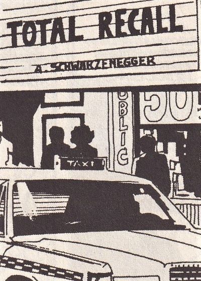 Diana ve Java, bilgi almak için Strand Kitabevine giderken bir sinema salonunun önünden geçerler. Sinemanın afişi enteresandır. Total Recall. Arnold Schwarzeneger ve Sharon Stone‘un baş rolünü oynadığı film 1990 yılında çekildi. Öykümüzün 1992 yılında geçtiği düşünülürse, film New York’da bayağ ilgi çekmiş.