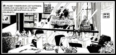 ‘’ Çizgi romanlarda , Sherlock Holmes ile ilgili çalışmalar neredeyse hiçbir zaman klasik anlamda polisiye öyküler değildir. Orijinal karakter, onun taklitleri, onun soyundan gelenler veya onunla aynı kıyafete sahip diğer karakterler çoğu zaman tümdengelimli polisiye öykülerden uzak, çizgi romanların baş kahramanlarıdır. Bonelli bağlamında, Sherlock kıyafetlerine sahip bir karakter, Zagor dizisinde ara sıra görünen Bat Batterton’dur. Bu tip karakterler Dylan Dog’da da, Napolyon’da da görülmüştür. Ancak, ‘’ orijinal Sherlock Holmes ‘’, Carlo Recagno tarafından yazılan bir çok Martin Mystère maceralarında, dikkate değer sayıda çizgi roman kahramanı olmuştur . Bana göre Recagno, söylediğim gibi Doyle’un orijinal kısa öykülerini stilistik bir referans noktası olarak alan, çok farklı bir şey yapmıştır. Doyle’un Sherlockvari öykülerinin ötesine geçen çalışmalara da yer verildiği görülmektedir. ( Doyle’un Kayıp Dünya romanında yarattığı Profesör Challenger’ın ortaya çıkması gibi ) Ayrıca, ağabey Holmes’un varlığı gibi göndermelerle oluşturulmuş bir anlatı çerçevesini görmek mümkün. ‘’