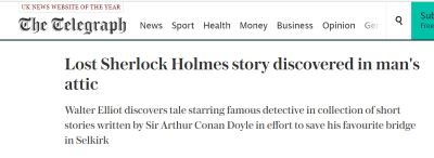 20 Şubat 2015 tarihinde The Telegraph gazetesi abonelerine çok ilginç bir haber geçti. ‘’ Kayıp Sherlock Holmes hikayesi bir adamın tavan arasında bulundu ‘’ başlıklıydı haber. Devamında şunlar yazılıydı :