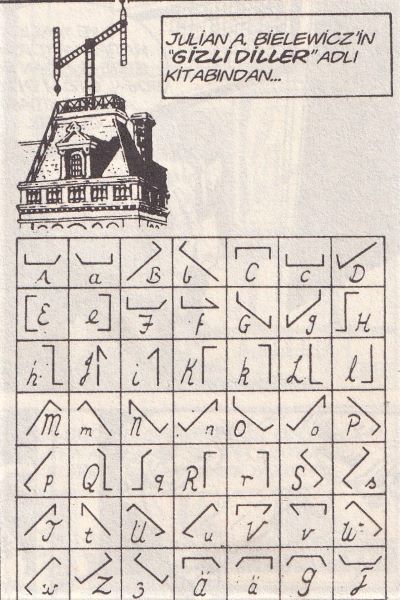 Jaspar; çizgi/sembollerden oluşan bir mesaj bırakmıştır. Martin, mesajın daha önce okuduğu bilimsel bir kitapta anlatıldığını hatırlar ve şifreyi çözer. Bahsedilen kitap, Julian A. Bielewicz tarafından 1980 yılında yazılmış. Secret Languages: Communicating in Codes and Ciphers. Türkçesi, Gizli Diller: Kodlar ve Şifrelerle İletişim. Kitap, okunması çok kolay ve çok sayıda güzel resim içeriyor. Yazar en önemli klasik şifreleme sistemlerini ve ayrıca normal hayatta (yani yetmişlerdeki) kodların nasıl kullanıldığına dair örnekler veriyor. Yazar, kitabın sonunda okuyuculara, 12 kodlu bir şifreyi soruyor.