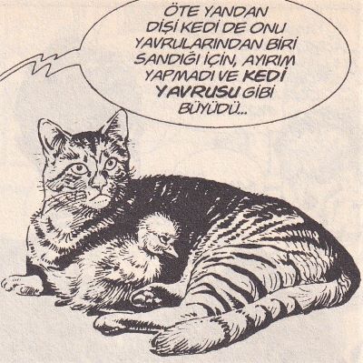 ⦁ Öyküde Castelli; bir sürü ufak tefek göndermeler daha yapıyor. Phybes’in kedilerle büyüyen ördek yavrusuna verdiği ismin Donald ya da Tom olması durumu. Donald Duck ve Tom & Jerry çizgi filminden kedi Tom.