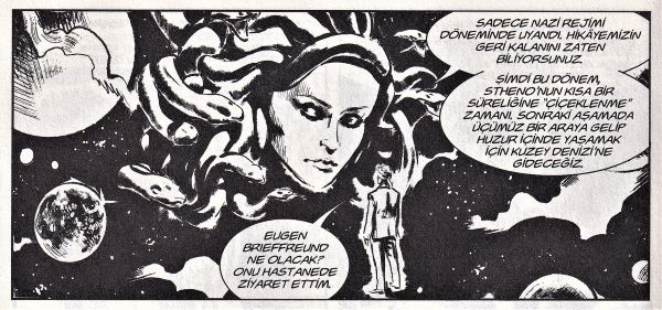 Gelelim Martin Mystere‘nin son kitabına. Bu öykü iki kitaplık bir macera. Geçen ay (sayı 230. Ayna, Ayna, Söyle Bana) ilk bölümü yayınlanmıştı. Öykü özellikle Mitoloji meraklılarının ilgisini çekecek bir öykü. Davide Barzi yazmış ve Italo Mattone resimlemiş. Barzi’nin Martin’i karakterize ettiği ve onu Yunan Mitolojisinin en ilgi çekici karakterlerinden biri olan Medusa‘ya doğru belli bir yavaşlıkla yaklaştırdığı ve yeni bir bakış açısı sunmasını tadabilirsiniz. Gerçi yayınlandığında Mitolojik kurgunun doğru olmadığı ile ilgili bazı eleştirilere ve tartışmalara sebep olmuştu öykü. Ama biz ÇizgiRoman severler unutmayalım ki bu bir roman. Belgesel ya da Doçentlik tezi değil. Ya okur geçeriz, ya da çok ilgimizi çekerse oturup araştırırız. Ya da Prof. Nevzat Kaya bize en ince doğru detayları anlatır. Gerçekten de anlatsa ne güzel olur değil mi?