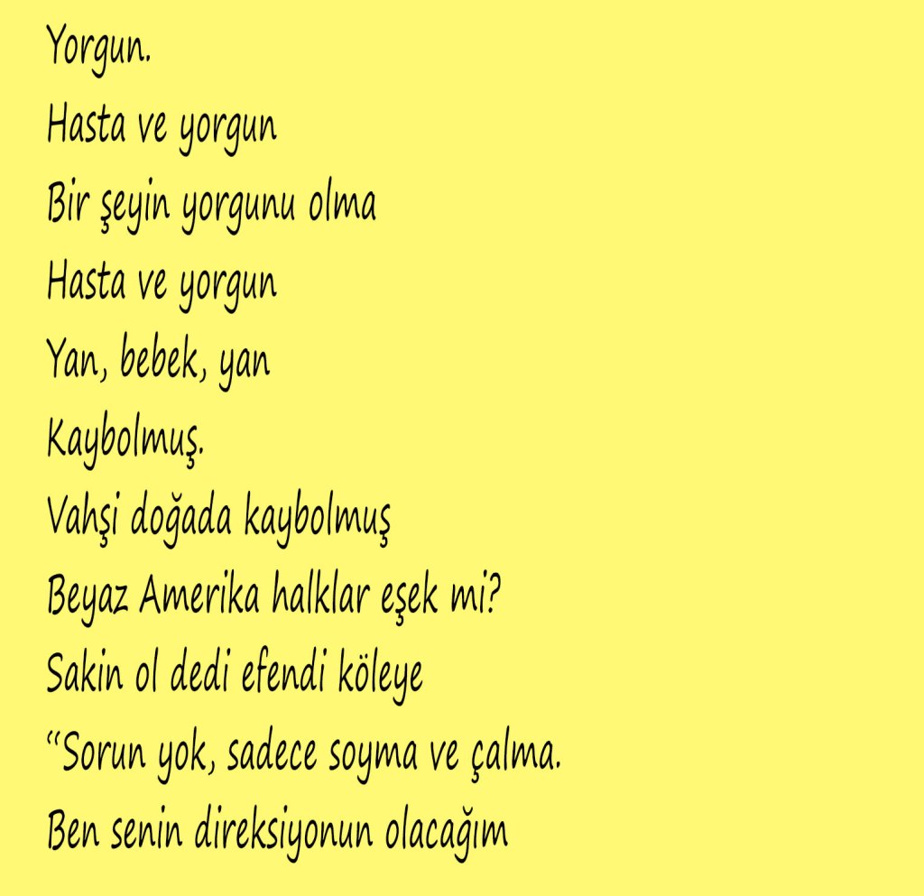Öykümüz, Mister No’nun, Ginsberg’in şiiriyle protestocu kalabalığın arasında yürürken biter.