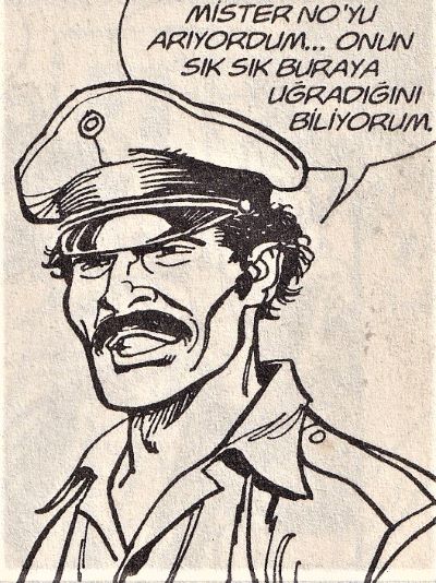 Çavuş Oliveira. Mister No maceralarının vazgeçilmez, rütbesi hiç yükselmeyen ve de aslında Mister No’yu sempatik bulan (hiç söylemese de) Çavuş Oliveira. İlk sayıdan itibaren Polislerle başı derttedir Mister No’nun. Nolitta başından beri iki ayrı tipleme Polis memuru çizdi bize. Biri, komik, sürekli rezil olan, karikatür bir tipleme. Diğeri ise ciddi, sert ve Mister No’ya mesafeli. Bu Polis tiplemesine uzun süre isim verilmez. Sadece ‘Çavuş’ denir. Sonunda herhalde artık sabit ve isimli bir kahramana karar verilince ‘Çavuş Oliveira’yı net olarak görürüz. 209 sayı olan Ormandaki Kazazede (Lal Yeni 5. sayı ya da Lal KM 53. cilt) öyküsünde tanışırız. Ama sayılar ilerledikçe tipi oturacak/değişecek. Japon rüzgarından Çavuş da etkilenir. Bacağında kalıcı hasar oluşur. Dönüyor öyküsünde de bastonla görürüz Çavuş Oliveira’yı.