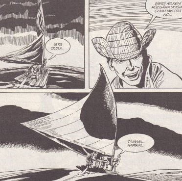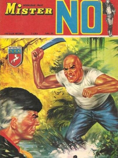 Özellik: Nolitta’nın en sevdiği hikaye. Nolitta ve Diso ikilisi, Mister No’nun aykırı karakterine yeni şeyler eklemekte. Kendisinin ya da başkalarının seçtiği yaşam tarzına müdahele edenlerle mücadele. Ayrıca, Roberto Diso, kırılgan teknedeki sekansı (sahilden ayrılış, açık denizlerde balık tutma ve ardından gelen çarpışma) kıyaslanamaz bir şekilde ana hatlarıyla çizerek ve aynı zamanda karakterin grafik karakterizasyonunu derinleştirerek ve de inanılmaz bir grafik şölenle elinden gelenin en iyisini yapıyor. Bu öyküdeki üç kişi daha sonraki öykülerde tekrar karşımıza çıkacak. Walter Murphy, Stelio Amaral ve Phil Mulligan. (Gerçi Mulligan bize polis olarak tanıtılmasına rağmen daha sonra onun özel dedektif olduğunu öğreneceğiz). Ayrıca, Mister No’nun, daha sonra İtalyan mafyasıyla yolu yine kesişecek. Birde sanki kapakların sırasında bir hata olmuş gibi. Köpek balıklı kapak bir sonraki sayıya ait gibi?. (İtalyan baskısında da).