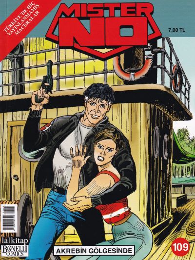 Özellik: Bu öykü ilk defa Mister No okuyacak birisi için biraz kafa karıştırıcı olabilir. Ama sadık ve dikkatli Mister No’cular bağlantıları hemen kuracak. Bu öykü iki kitaptan oluşuyor. Lal aylık seri 141-142 (Orijinal 347 -348). Ama bu öykü başka bir öykünün devamı. Lal aylık seri 108-109. ‘Manaus’da Ölüm’ (Orij. 314-315). Hatırlarsınız, dostları Mendy’nin Kocası Knox ile gelip kimya fabrikasını kurdukları öykü. Hain yeğen Ridley Knox’un ölümü ile bitmiş idi (Hani şu Brat Pitt’e benzeyen). Bu öykünün neredeyse tüm kahramanları az çok önemli rollerle geri dönüyor. Gerçi bu öykünün de iki tane, öncesi olan öykü var ama ortalık karışmasın. şimdilik geçiyoruz onları. (Redencion’da Bir Yabancı ve Korkusuzlar). Bu bölüm, ayrıca başka bir öyküye de ucundan değmektedir. Lal Aylık seri 116-117 ‘Tehlikeli Fotoğraf’ (Orij. 322-323)