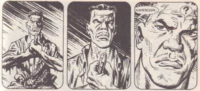 Özellik: Öncelikle ‘Redencion’ ismiyle başlayalım. Sözlüğe göre, Kurtuluş yada Kefaret anlamına geliyor. Yani ‘bir günah için verilen sadaka’. Zengin kanun kaçakları için, paralı bir günah çıkartma merkezi. İshikawa, 1943 kışında Pasifik Okyanusu’ndaki bir adada, komuta ettiği askerlerden oluşan bir müfrezenin Amerikalılar tarafından yenilgiye uğratıldığını bize canlandırıyor. Onurunu korumak için onun komutası altında ki herkezin yaptığı ‘harakiri’yi hatırlıyor. Ancak küçük kardeşi Tetsuo’nun aynı şeyi yapma cesaretini bulmasına yardım etmekle meşgul olan Ishikawa, Mister No’nun müdahalesi nedeniyle bu ritüeli tamamlıyamadı. Ve kendisini engelleyen Mister No’yu affetmedi. Tabii ki biz bu düşünceyi anlayamıyoruz